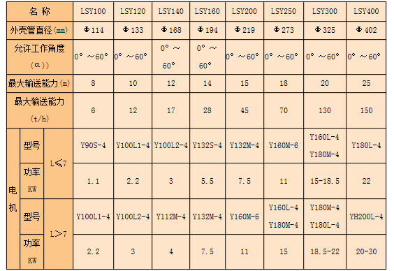 LSY螺旋輸送機(jī)與其他輸送設(shè)備相比較,具有結(jié)構(gòu)簡單、橫截面尺寸小、密封性能好等特點(diǎn),可以中間多點(diǎn)裝料和卸料,操作安全方便以及制造成本低。設(shè)備缺點(diǎn)是機(jī)件磨損較為嚴(yán)重,輸送量較皮帶機(jī)低,消耗功率大以及物料在運(yùn)輸過程易被破碎。